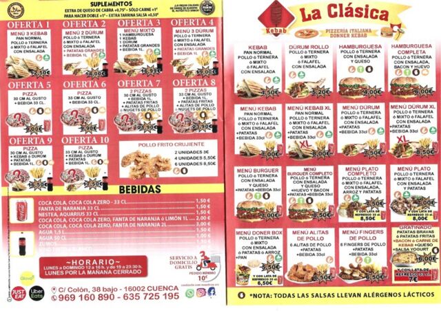 Disfrute del ambiente cálido y la hospitalidad de La clásica pizzería italiana - Doner Kebab Bar , ubicado en Cuenca. ¡Le damos la más cordial bienvenida! Prepárese para ser cautivado por nuestra deliciosa selección de cocina turca. Nuestro amable personal le servirá la mejor comida rápida aquí. Siéntese y disfrute de nuestra comida preparada hábilmente, diseñada para satisfacer todos los gustos. Asegúrese de probar nuestra variedad de tiramisú. Atendemos diversas preferencias dietéticas, ofreciendo una variedad de opciones halal. También hay cerveza refrescante, vino y té disponibles para complementar su comida. Nuestros serviciales camareros lo están esperando para deleitarlo con un delicioso desayuno y cena.